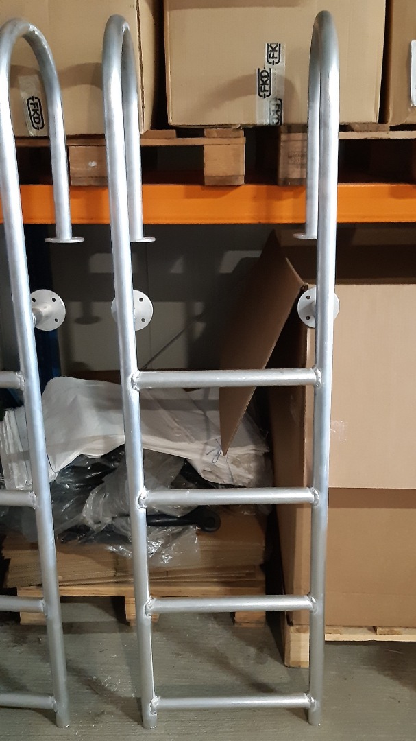 Eenvoudige Zwemtrap voor steigers / kade. Vervaardigd van aluminium. Ronde buis en ronde treden.